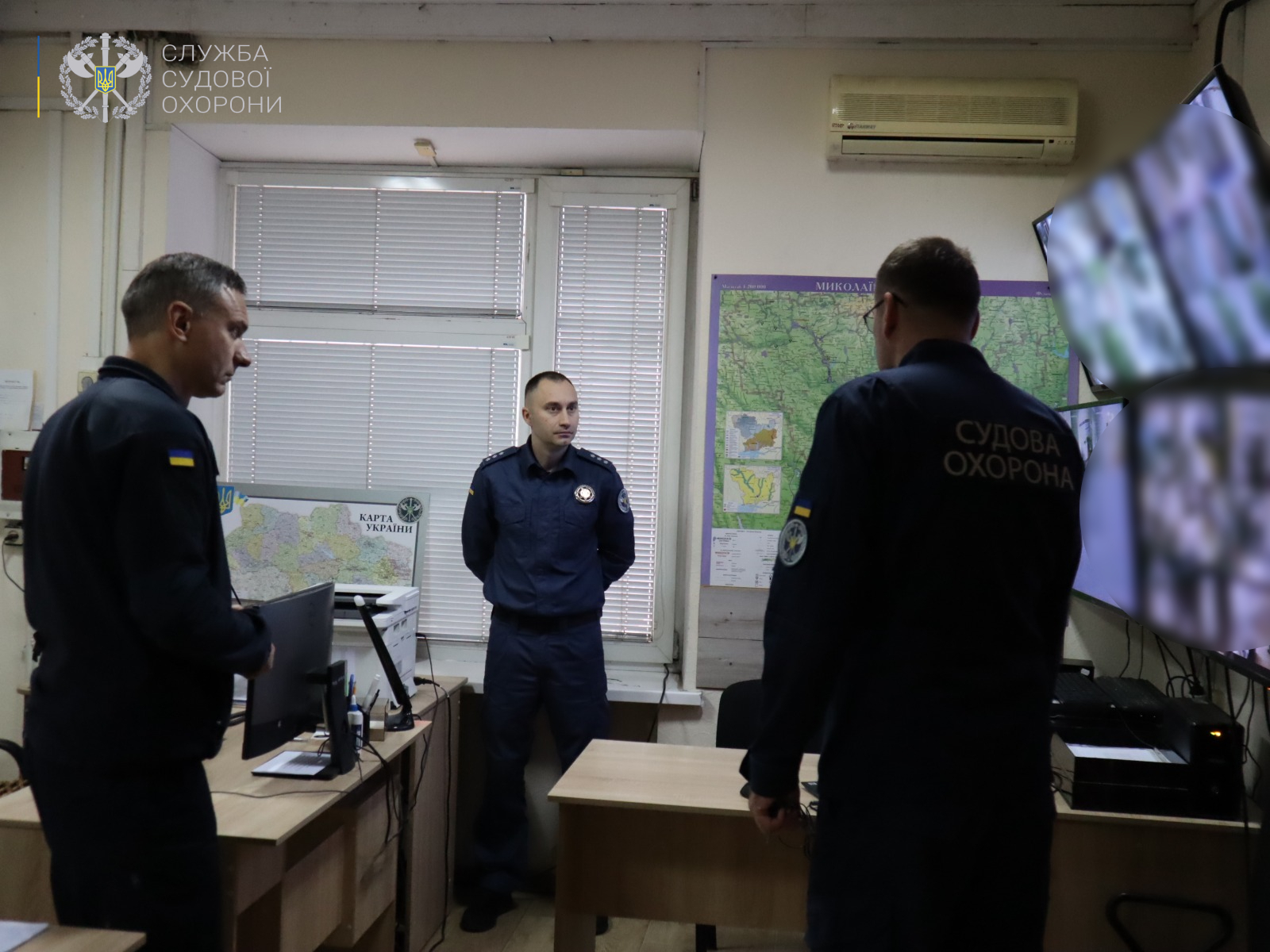 Під час візиту начальник Територіального управління Служби у Миколаївській області полковник Служби Ігор КИРНИК презентував Петру Валентиновичу особливості організації служби з охорони органів та установ системи правосуддя Миколаївщини, обладнання системи відеоспостереження постів пропуску та охорони, стан організації контролю та відстеження оперативної обстановки на об’єктах в реальному часі, стан дії дублюючих сигналів охоронно-тривожної сигналізації у відділі оперативно-чергової служби територіального управління.